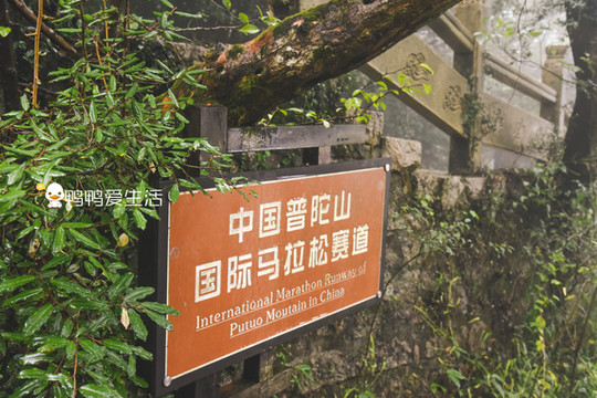 雨越下越大,一度纠结是否步行下山,惦记着那块“海天佛国”石,最后还是选择了沿香云路步行。瓢泼大雨下,在山道上,三步一跪,五步一拜,七步一叩首,这是怎样的毅力呢?但这个场景,在普陀山的香云路上无论刮风下大雨,几乎每天都能见到,这条山路也被称为普陀山的“朝圣之路”,不禁令人感叹信仰之力无穷。