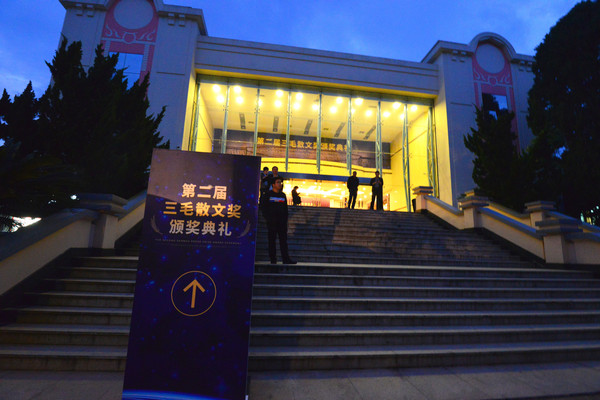晚饭后六点半参加第二届“三毛散文奖”颁奖典礼,“三毛散文奖”是浙江省作家协会重要文学奖项之一。