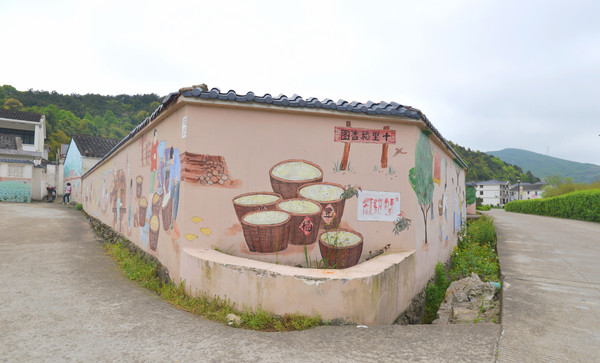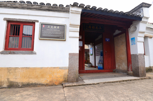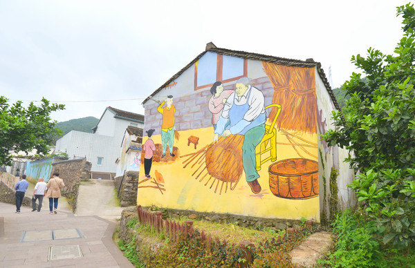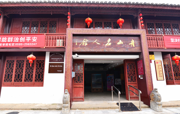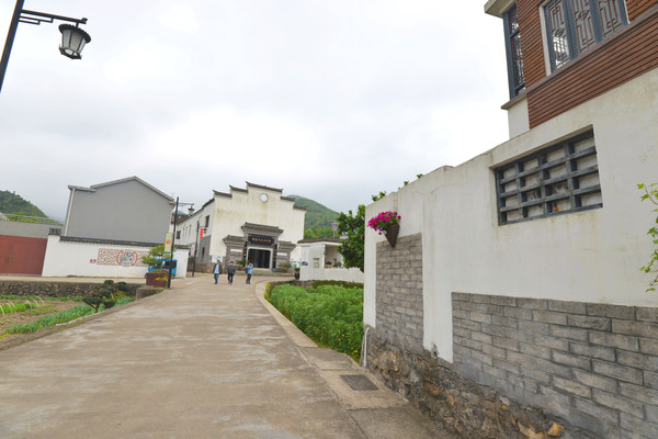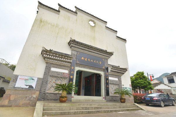 村里的文化大礼堂就在村中心,有两层,一楼为戏剧展陈馆,是“中国南洞·戏剧谷”的重要组成部分,二楼为领导人在舟山调研视察活动纪念馆。