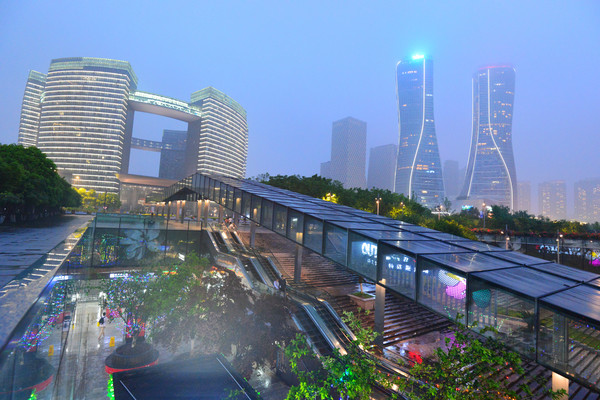 再往前走到城市阳台了,在这里你可以近距离欣赏钱塘江,G20峰会期间上演的灯光秀和音乐喷泉,使这里一跃成为杭州新晋的网红景点。