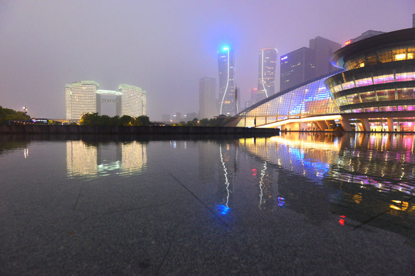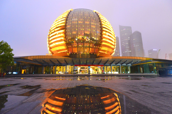 东面有一个“月亮”,是杭州大剧院。