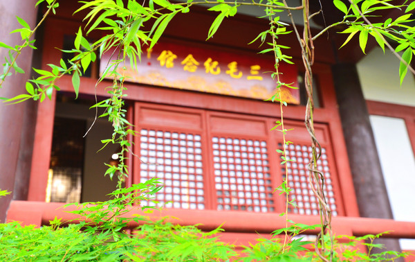 现在的三忠祠是1997年3月从定海和昌弄17号完整迁建过来的,迁建后的三忠祠坐北朝南,由前大殿、正大殿、东西厢房等构成,在原有的基础上新增了文史室和书画室。