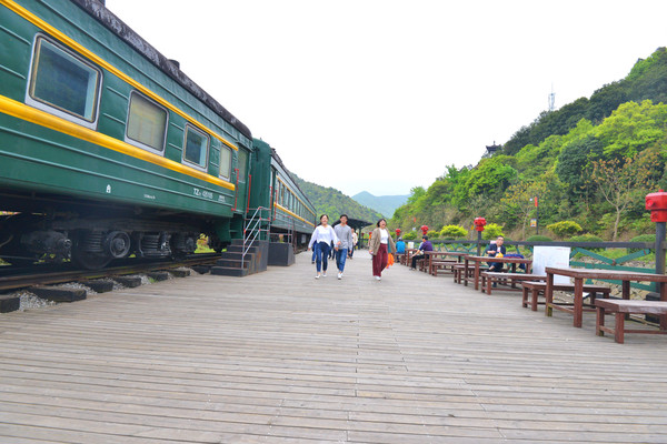 8节车厢的绿皮蒸汽火车,已成古董级的大家伙,是南洞艺谷标志性的文艺担当,仿佛回到上世纪车马慢的旧时光里。