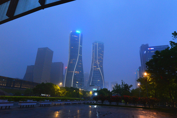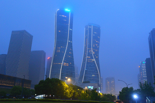 望望四周,是拔地而起的高楼,有点上海陆家嘴的感觉,现代化都市夜景吸引很多人前来休闲、观景、娱乐,人们一边看一边拍照、录像,发出阵阵感叹和喝彩,让你感受到杭州新城的蓬勃生机。绚丽的灯光秀更是吸引眼球,高楼大厦化身巨幅屏幕,呈现出斑斓的映像。