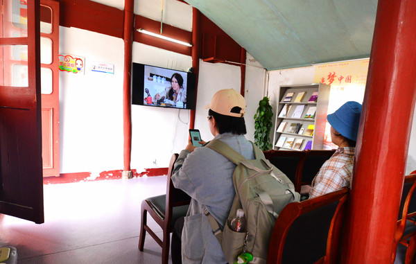 毛粉在谈自己的参观感受,虽然富龙我没详听,但从她的表情可以猜出,来这里满足了她的心愿。