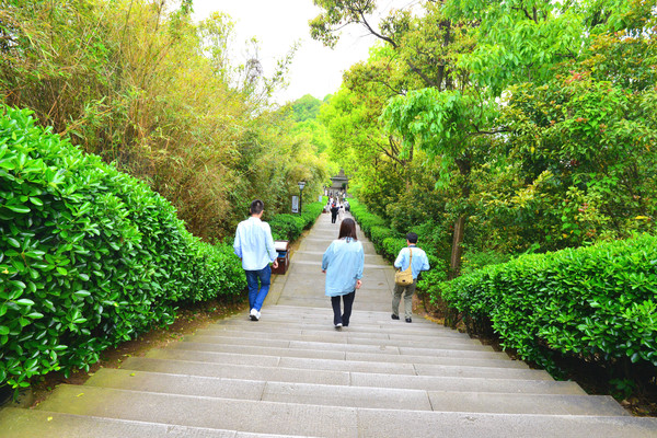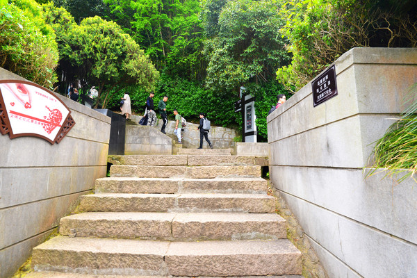 继续拾级而上,两侧树木繁盛,山中树林保护得良好。