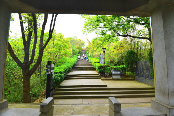 遗址公园所在的这座山峰叫晓峰岭,是鸦片战争时的古战场遗址,沿公园石阶逶迤而上,鸦片战争纪念馆、三忠祠、定远古炮台和阵亡将士墓等均位此,红色气息遍及这片山头,整座公园显得庄严、肃穆。