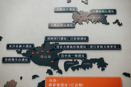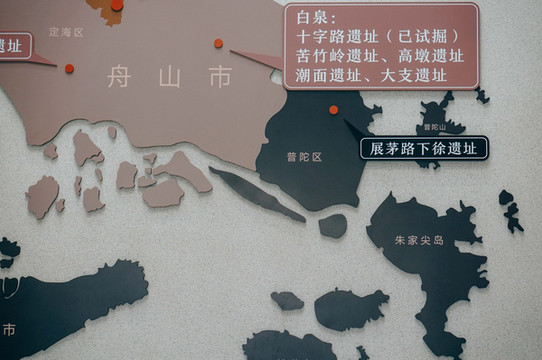 一进入馆内就可以看到,一整张 舟山 的地图,标注了所有的遗址地点,清晰明了,不仅可以清楚整个舟山 的地理环境位置,还可以了解这里的历史文化。