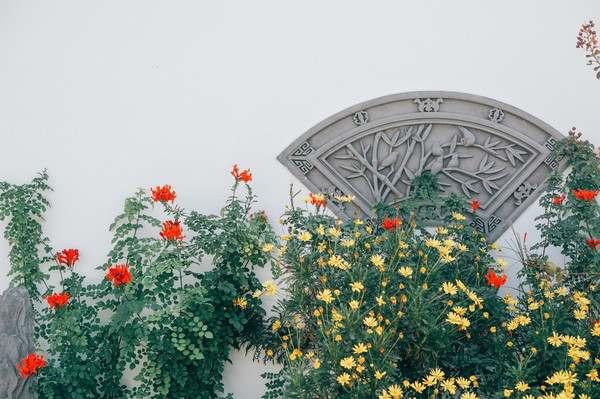 白墙黛瓦,花和树枝的倒影也是这么的美好。