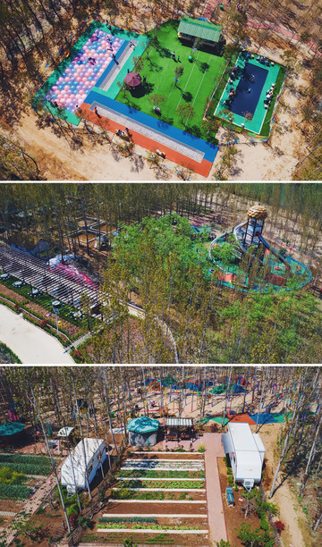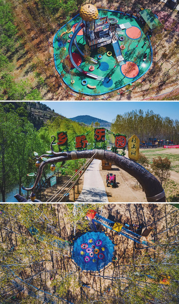 也可以回到岸上,跨进利山涧乡野乐园的大门,在一排排的树林里,藏着各种孩子们喜欢的游乐设置,话题,蹦床,草坪,爬架,当孩子们相互追逐跑跳的时候,大人们可以从容的在景区设置的烧烤专区甚至大锅灶台处,把从家里大包小包拎来的好吃各种摆上,在春日露天的厨房里,烟熏火燎煎炒烹炸,最后关头,一嗓子吼出去,谁谁谁,你妈喊你回来吃饭啦!