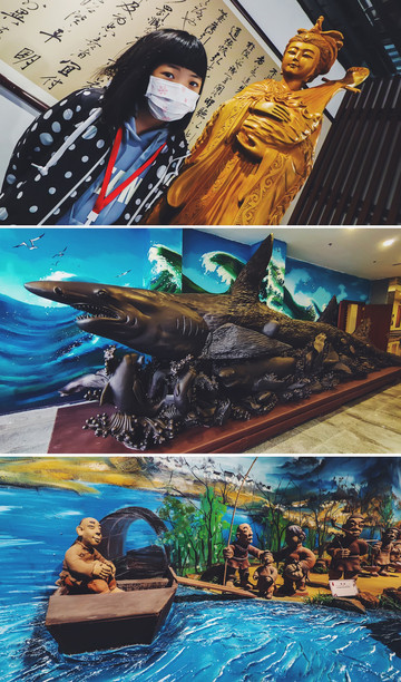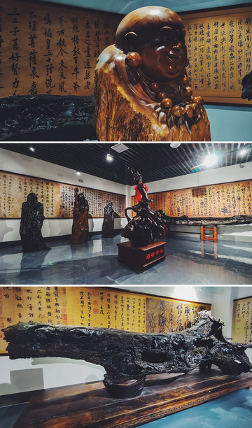 从一楼的根雕木雕展厅开始,各种精致的雕刻雕塑展现在我们眼前,米果很喜欢四大美人系列,也要求合影一张,难道是要拿王昭君做个榜样?