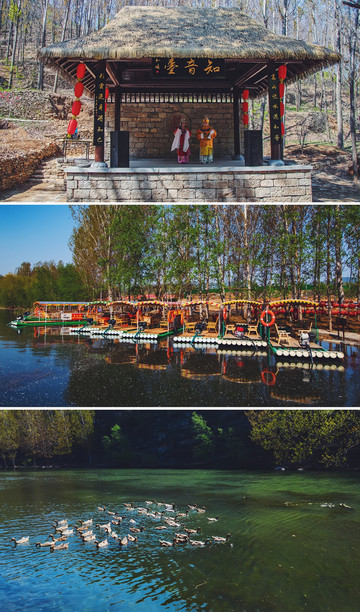 从古村山谷绕出来,在包围整个景区的河道水系里,可以体验一下竹筏漂流,去戏弄一下先前拍到的鸭子们。