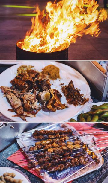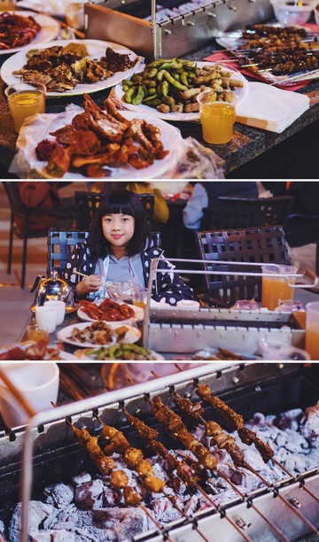安顿好入住,管家叫我们下楼带着我们逛了逛红云小镇的街区,这也是新开张不久的一处仿古风格的小镇,背靠奇石文化园,也是由银光集团倾心打造的,但是看到眼前这张图,你就知道我们决然无心再转悠了,红云小镇的中心广场,一顿肥美的烤全羊和撸串大餐在等着我们,原浆啤酒,烤串烤鱼,米果已经进入感觉左右开弓了,电动小烤炉释放我的双手,走着,米果妈妈,干一个。