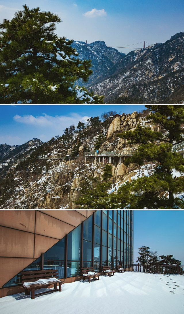 悬索吊桥全长505.5米,横跨两座山峰,连接起玉皇宫和望海楼,不管是云海,落雪,晴朗,雨天,只要漫步在这天桥,便是踏云而行的喜悦,释放一下压力,试着挑战一下自己的胆识,你会有怎样的感慨呢?