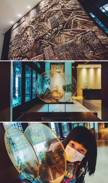 遵循鄪国古城建制打造的建筑和古商街看上去味道十足,讲解员简单的向我们介绍了一下鄪国的缘起,好像米果很感兴趣,穿梭在整个展示中心里,这里瞧瞧那里看看,喜欢传统文化是好事情啊,那就多听听,多转转。