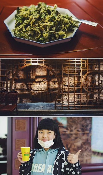 米果手里举着的,绝对不是她甚至我的作品,我们还真的尝试了,成果不堪入目。轻薄的煎饼透着从树林中洒下的阳光,足足半个身子大。背着娃的大姨在高处看着我们笑,和摊煎饼的大姐唠着家常,还有远处传来的响彻山谷的柳琴戏,那声线是真的高,只是我们全家是真的听不懂。