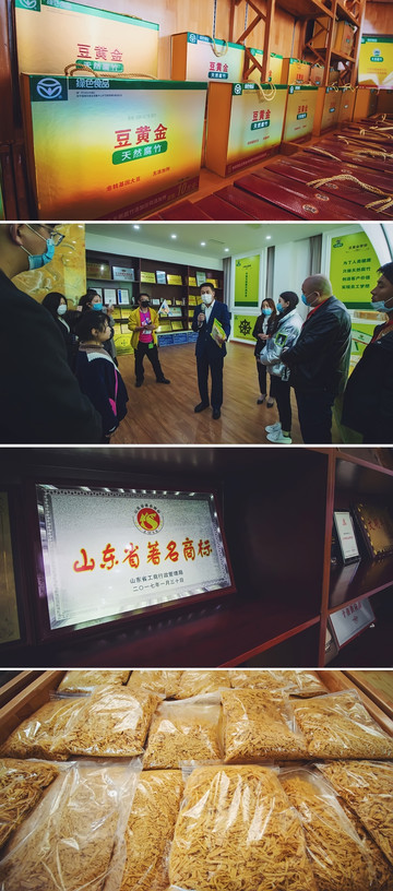 在御华景宸度过了中午快乐时光的我们,吃饱喝足后赶赴了另外一个在费县非常有名,可以说随处可见的名牌产品的工厂“豆黄金”,豆黄金是以生产绝对零有害物质添加的鲜腐竹生产企业,山东省名牌产品啊国家级优质产品的名号响亮极了。董事长亲自为我们讲解了什么叫真正的好腐竹,好豆制品,好豆浆,米果在现场品尝后也是赞不绝口的各种竖大拇指,哈哈哈,容易被吃收买的小孩儿。