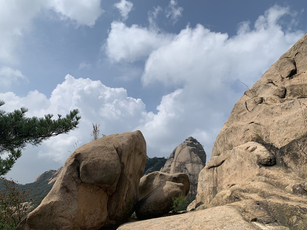 然后出发五莲山,从酒店到五莲山道路非常好走,大概1个多小时的车程吧,初秋的缘故吧,天格外的蓝,白云朵朵,真的是很美-------