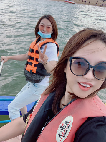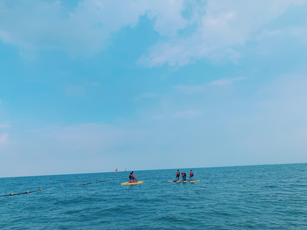 酒店可以加工海鲜,吃饱喝足,午休后我们出发第一站万平口海滨浴场,受疫情影响都是免门票的,日照的海边特别棒,沙子非常细腻,干净,我们拍大片、骑海上自行车,真是爽极了