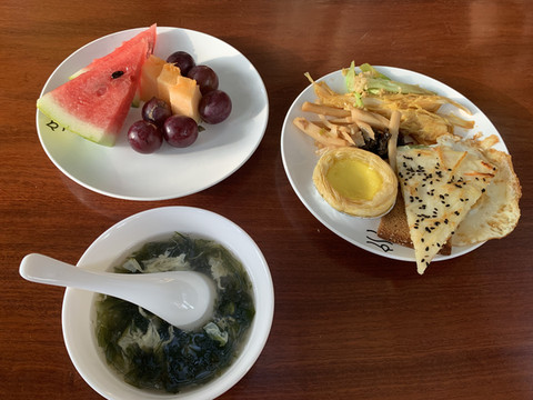 酒店早餐在这里还是要说一下,中西式,品种丰富,什么鲜榨果汁,寿司,蛋挞,小混沌,我们吃的妥妥滴----