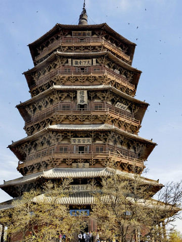 木塔名为“释迦塔”,是世界上规模最大,时间最长的木结构建筑,全部是榫卯结构,站在木塔之下,为其技艺所震撼,那种古朴感也让人颇多感慨。梁思成先生对其评价:“不见此塔,不知木构的可能性到了什么程度。”