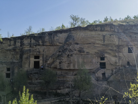 南边崖上有大小不一的20多处石窟。沿着峭壁行走,在洞窟中穿行,很是惊险刺激。