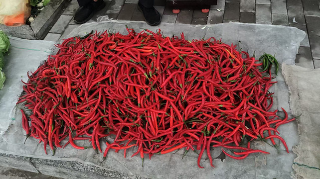 四:绥德特产:第二天一早来到酒店老板说的河边早市;溜达一圈;卖的东西真不少;有土豆;红葱;棒子;辣椒红红的特漂亮。