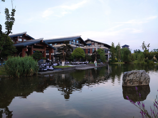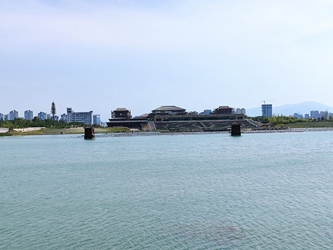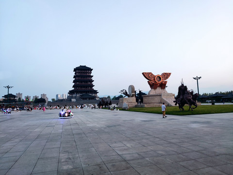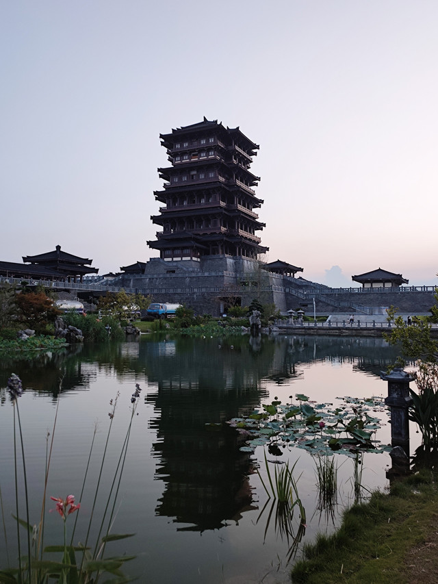 景区内仿古建筑很多,亭台楼阁,曲水流觞,瞬间有一种梦回汉朝的感觉。我们游览的这几天气温很高,大部分人都尽可能往室内躲,所以景区内看不到多少游客,但《汉颂》《天汉传奇》两场演出的现场人头攒动。