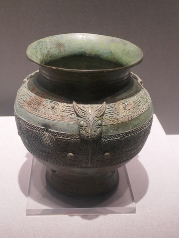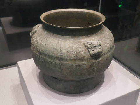 兽面纹铜瓿(商代)。瓿(bù),古代的一种小瓮,同缶,用以盛酒或水。