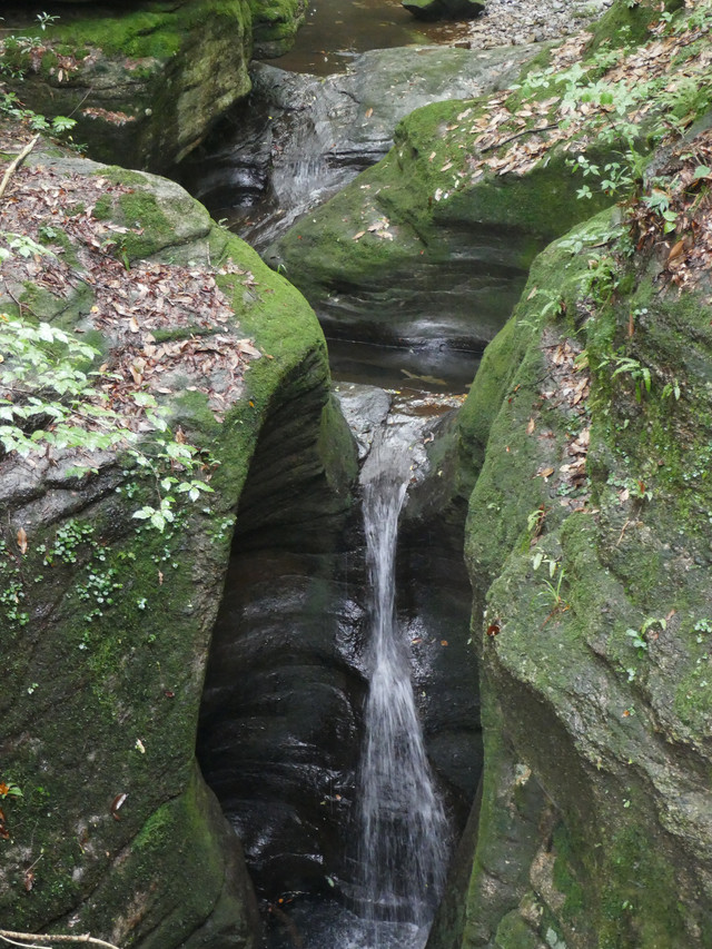 壁孔,是古人在山腹中开凿,用来插栈道横梁的装置,长80厘米,深40厘米,四周平整,下方有一个小槽用来排水,这也是我国古代最早的养路技术。