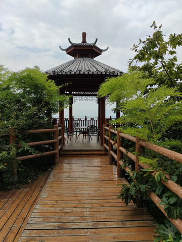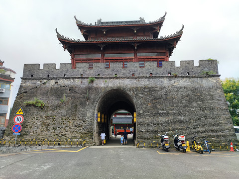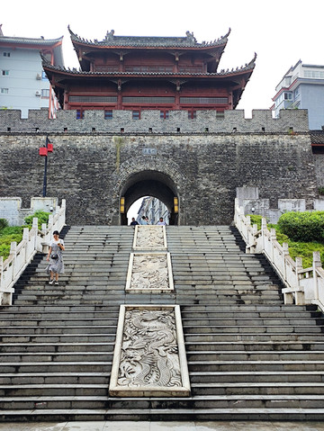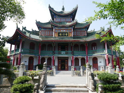 望江楼位于景区最高处,是一座三层八角宝塔形建筑,高17.5米。始建于南宋年间,民国七年(1918年)重建,现在看到的建筑是清末民初风格,1995年落架大修而成。随着城市快速发展,如今登临楼上,已无法像初建时那样,能看见远处的汉江。