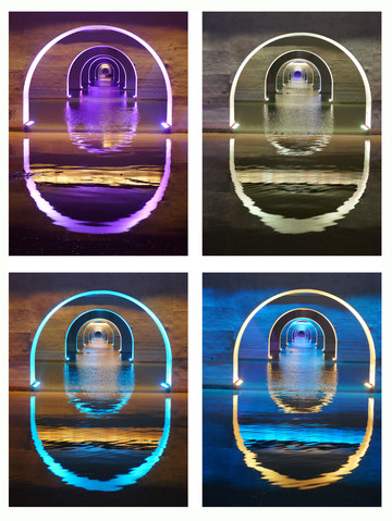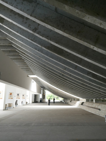 大厅与主体建筑通过一条长220米的水下长廊连通,两侧是表达仁义、礼智、信节、忍谋、略恭、诚忠的字画。