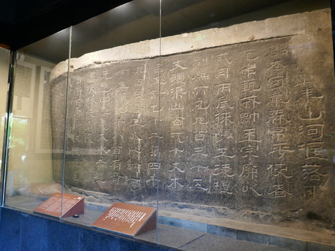 ▲泰山羊祉开复石门铭摩崖石刻,简称石门铭,北魏宣武帝元恪永平二年(509年)所刻。高175厘米,宽215厘米,27行,每行22字,楷书。北魏梁秦州典签王远书写铭文,河南郡洛阳县石匠武阿仁刻字。记述北魏时期梁秦二州刺史羊祉表求改道的事迹,歌颂了左校令贾三德“精解冥会”的杰出才能和“忠公忘私”的高尚品德。该碑融记事、颂功、抒情于一体,引用大量历史典故,以古论今,文采飞扬,富有感染力,是我国古代骈体文的佳作。