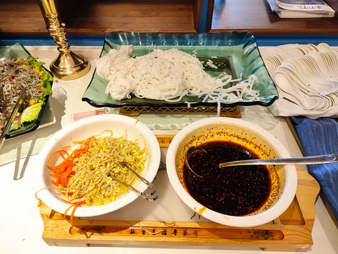 汉中面皮:虽然叫面皮却是米做的,柔韧软糯,加上辣油后,更加美味可口。