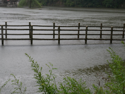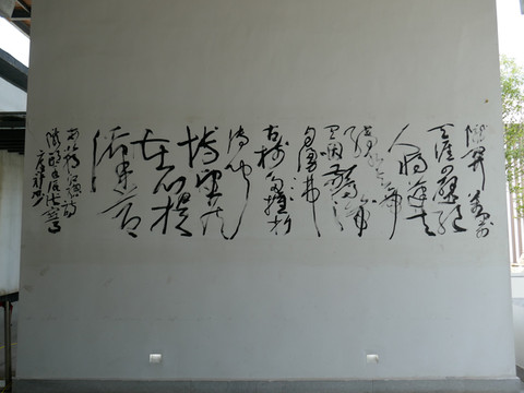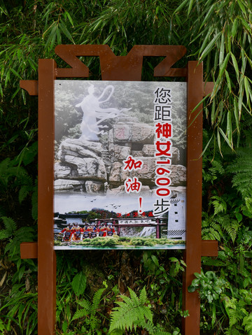沅湘挹秀。湘指湘水,沅指沅水,挹是牵引,意思是把湖南的秀丽引到这里来。这是一名湖南学士途经汉中时留下的墨宝。边上的竹子是凤尾竹,因竹叶紧簇密实,远看像凤凰的尾巴,故名。