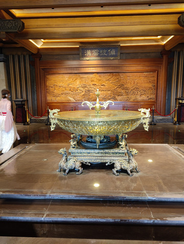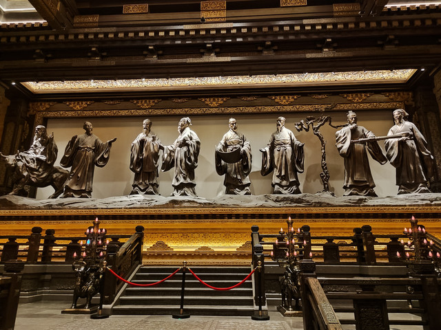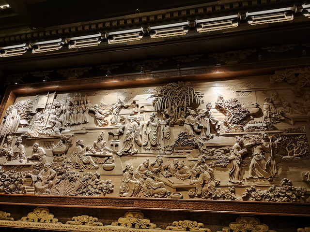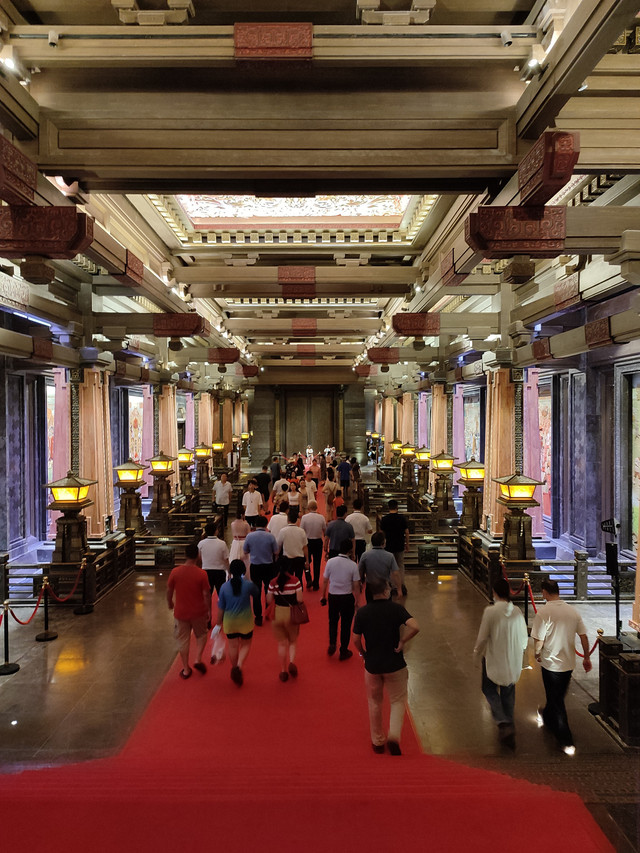 厅堂大殿气势雄伟、豪华壮观,一圈走下来,随处可见精美的彩绘、漆画、木雕、铜雕、石雕。这…这…这需要多少人力物力财力啊,据说斥资5亿元、耗时5年建设,总投资达20亿元,还不算平时的清理打扫、维护保养等费用。