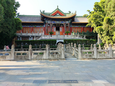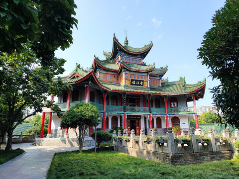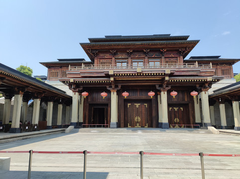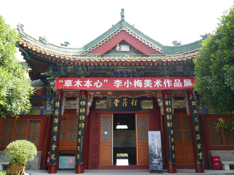 望江楼对面是桂荫堂,取桂树成荫之意,屋顶为中国古代建筑最高形制庑殿顶。现为临展厅。