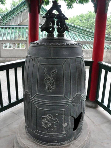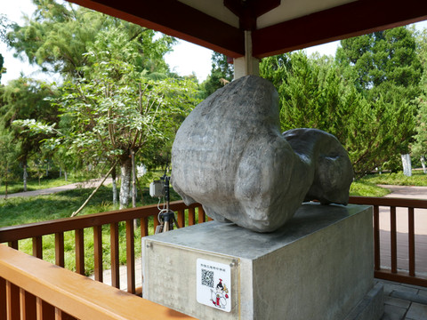 石鼓亭位于望江楼西侧,亭中的石鼓,通高103厘米,直径约为105厘米,腹部比较大。