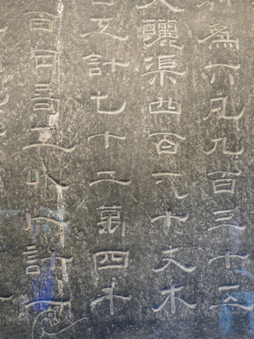 该碑刻用笔独特,在宽博平稳中追求变化,有些字上部取平直,下部圆转;在方正与舒展中略带篆意,参差错落,流畅生动。如上图的“四”“百”,同一个字,写法却不一样。
