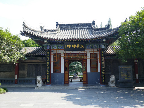 “汉台碑林”牌坊,里面是汉中市博物馆最重要的一组陈列,被列为第一批全国重点文物保护单位的褒斜道石门及其摩崖石刻。