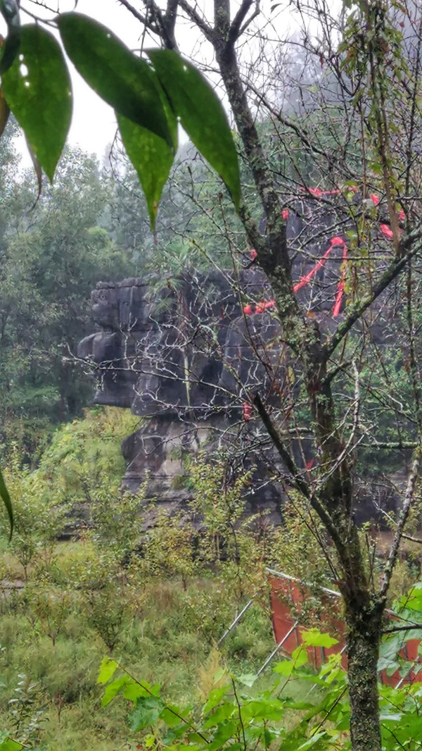 今天的第一站是狮子关,这里有网红浮桥。和梭布垭石林一样,这里免门票,但也要买30元/人的景交。由于前一天下了雨,没有太阳,感觉在浮桥上走,旁边仙气缭绕,与晴天相比别有一番风味。感觉在浮桥上最有趣的部分就是当有车子从浮桥上开过,人会随着浮桥上下颠簸,很刺激,车速越快越有趣,同行的人还对着路过的车喊“开快一点,开快一点”,每当车子开过,浮桥上就会有尖叫声和欢笑声,让人觉得很开心。天气不好,狮子关里的漂流不开放,因为前一天下雨,雨量还不小,水上公路也不对外开放,觉得好遗憾。只能走了网红浮桥以后,景交拉我们到悬棺处就折返了。悬棺只有一个,据说是一个湖南人,姓刘的,至于悬棺是怎么弄上去的,至今仍是不解之谜。今天的导游是个腼腆的苗族小伙子,不大爱说话,到现在我都不知道那个狮子关到底指哪里。景区里有卖吃的,大家可以在那里补充点再去下一个景点。今天的第二个景点是伍家台。那里是个大茶园,还没到那里的时候,远远就可以看到一个巨型的茶壶,喜欢茶园或者喜欢喝茶的朋友可以去那里看看,除了看巨大的茶壶,茶园里有个巨石,上面有乾隆赐的四个字“皇恩宠锡”,这是由伍家台进贡的茶叶而得来的。伍家台如果走的快的话半个小时不到就走完了。中午没好好吃饭,看到导游在一家店吃饭,我们也跟着去了,那里的人很淳朴,不会宰人,小份的豆皮只要5元,大份的也才10元,还有饺子、面条等。我要了一碗炒豆皮,还可以自助拿他们自己做的酸萝卜吃,味道她没有做的很咸,淡淡的酸酸的,还不错。
