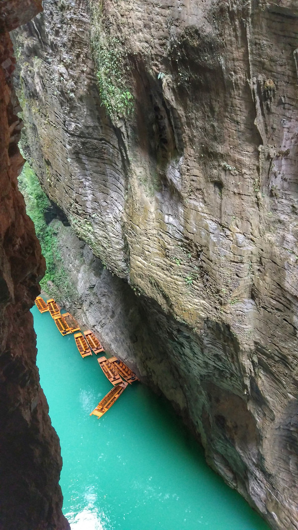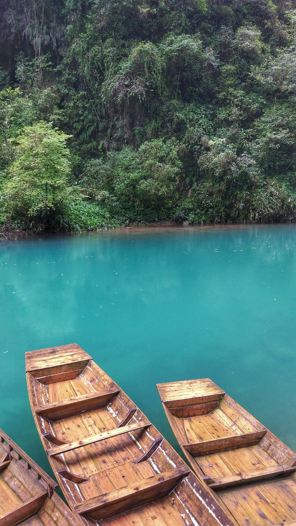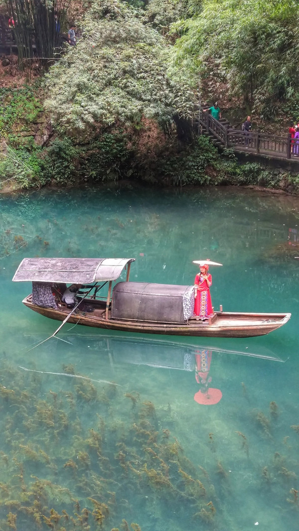 今天的行程是屏山峡谷,因为它不是A级景区,是私人经营的,所以不免门票,门票是258元/人,船票60元/人,个人觉得门票偏贵。由于是不免门票的,旅行社的散客团去那里的人很少,那天只有我和一位北京大哥两个人一起坐车去。到了景区还是下雨,景区不大,拍拍照走走,一个小时不到就到游船码头了。景区里面也有卖吃的,不像导游说的景区里面什么吃的都没有。如果天气好,可以选择一个人坐一条船,拍出船悬浮的效果,因为那天下雨,所有没人去照顾拍照的生意。如果拍照一定一定要提前告诉他你准备了几个动作让他从哪从哪给你拍,否则可能拍出的是你闭眼的照片。走过浣云桥、千寻瀑,到了坐船出景区的地方,没有人跟我们一条船,艄公一定要我们再等等,觉得一条十几个人的船只带我们两个出去,很不经济,但实在雨天没什么游客,只好只带着我们两个人出去了。个人觉得还是出去的坐在船上看到的景色美,有黑龙渊、一线天等景色,湖水也很绿,是绿得发蓝得那种。下船还需要通过隧道,爬很多阶梯才可以到达景区出口。