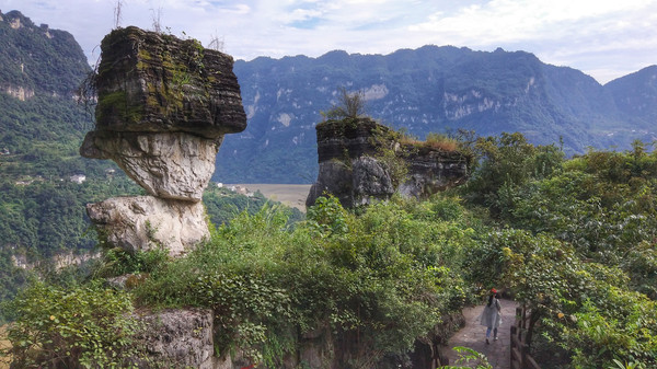 这天的行程是恩施大峡谷。由于之前恩施下了三个多月的雨,从市区到景区最近的那条路有塌方,只能绕道而行,原本一个半小时的车程也变成了两个半小时,有一部分是盘山路,晕车的人需要备好塑料袋和晕车药。运气比较好的是天总算不下雨了,但是早上还是雾蒙蒙的。园内交通:大巴车、上行索道、下行扶梯:分别位于游客中心、索道站、扶梯点,工作时间08:00-16:00,大巴车30元/人,上行索道110元/人,下行手扶电梯30元/人。我们去的时候碰上景区搞优惠活动,上下山索道来回105元/人,加上景交30元/人,也就是一个人135元。景区可以分为山下的云龙河地缝和山中区域。之前几个月因为下雨,云龙地缝和七星寨的一炷香都不对外开放。对外开放的就只有七星寨的一部分。上山的时候需要乘坐索道,下了索道走一会可以看到悬棺石,走过绝壁长廊,可以看到石芽迷宫、土司城堡,那天雾气比较重,在上面基本看不到大峡谷的景观。因为觉得时间来得及,下山的时候没有选择坐索道下去,而是选择自己走下去,大概连拍照加吃东西单程一个半小时。步行下山可以看到楼门石浪,也就是一堆石头组成的一个景点。下山的时候云雾渐渐散去,在南天平台总算可以观赏到大峡谷的风光,虽然这次没法去一炷香和云龙地缝,下山时能够看到大峡谷,总算也是弥补了一些遗憾。走了一段挂壁栈道,离七星寨的大门就不是很远了。大门附近有一些卖特产的店家,买了10元一份的炕土豆,吃的时候一只狗一直在旁边盯着我看,就分给了它一点,也许是真饿了,它居然还吃的津津有味。如果以后景区全线开放,建议先游玩七星寨景区,再游玩云龙地缝的好处:一、80%的大巴团旅行社,是先游玩云龙地缝,后玩七星寨;可以错开人流高峰; 二、游玩七星寨,不仅可以有几率看见云海,而且还不热,等下午热起来,就可以钻到云龙地缝乘凉啦。晚上我就在火车站附近的夜排档买了烧烤吃,没想到味道还挺让人惊艳的,10元就可以买到30串牛肉,不过是小串,感觉在上海没吃过那么好吃的烤串。