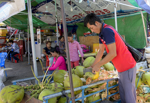 从金边坐湄公快线到暹粒要5个半小时,车上发一些小吃,中间还要停车吃饭。但食品很差,老外一般都不吃。我也是老外,也不吃。