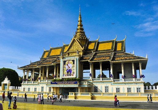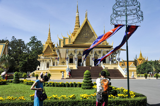 住下之后,我就赶往王宫。这个小店离王宫不太远,出门向右一直走就到了。王宫旁边就是国家博物馆。它们都是金边最重要的地标。