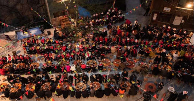 庖汤:主要以黑毛猪为主食材,配上时令蔬菜,采用条形桌或圆形桌拼成长桌宴款待游客,俗称“杀猪饭”,吃到便是品尝过年的味道。