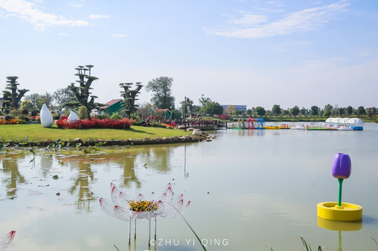 荷兰花海里的种类非常丰富,地上长花、湖中生花、树上开花,还有着中国第一大郁金香花海,即便是在秋天,还能见到连绵的郁金香花海,大概也是因为今年秋天实在太暖和了。