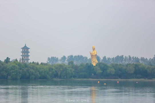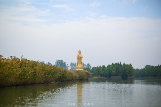 在湖上坐着船,还能遥望到湖面上的观音像,就像一个灯塔一样,指引着我们往大纵湖的深处驶去。
