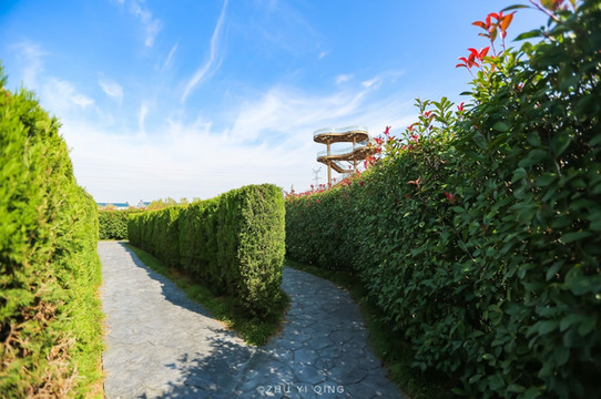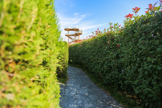 梦幻迷宫长廊不是由普通的隔墙组成,而是由绿色清新的树墙组成,从迷宫的外部进入迷宫之内,再由中心位置向外走出迷宫,漫步在郁郁葱葱的树墙中,有时都忘记自己是在走迷宫。如果想给走迷宫再增加点难度,那么你可以来尝试下迷宫竞赛,在规定时间走出迷宫来决定是否挑战成功,又或是能否到达迷宫的中心位置为获胜的条件。
