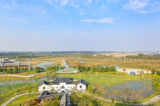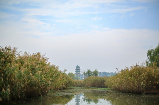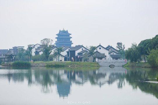 仿明清古建的建筑随处可见,掩隐在芦苇荡后,黑瓦白墙,古色古香,给大洋湾又添上了更多的人文色彩。